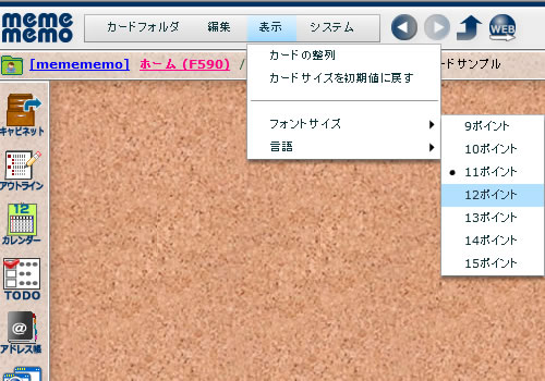 ここではミームメモ上の表示フォントサイズを変更できます。
