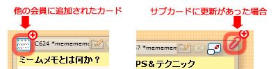 あなたの購読しているフォルダやあなたの公開フォルダなどにカード追加されたり修正されたりしていた場合には、この図のようにカードアイコンが光っている様な表示になります。