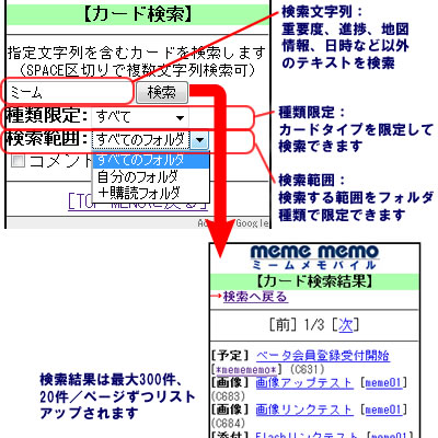 . ミームメモバイル:カード検索