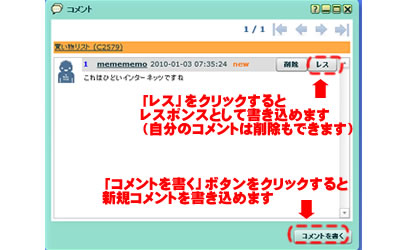 すべてのカードには、コメントを付ける機能があります。 ただし、カード編集ダイアログで「コメント欄を閉鎖する」設定にチェックマークを入れた場合にはカードにコメントをつけることができません。 カードの右上にある吹き出し状のアイコンをクリックすると、コメントダイアログが表示されます。 コメント数は1カードあたり300件、1コメントあたり256バイトまでとなっています。 公開されているフォルダのカードには許可された会員がコメントを書き込むことができます。 フォルダのオーナーもしくは書き込み人自身がコメントを削除可能です。 |