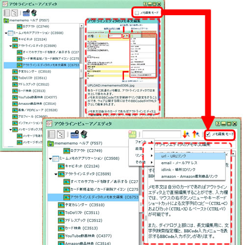 | 3-2-3. アウトラインエディタのメモ本文編集 |