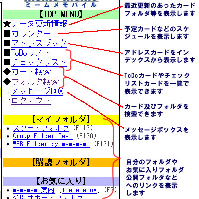 | 8-3. ミームメモバイル:トップメニュー |
